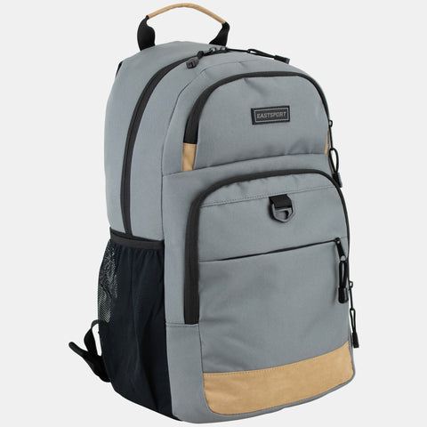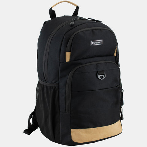 Carry all of your personal items, books and more in this stylish and trendy Eastsport Backpack. This backpack includes two main compartments, three front pockets and two side mesh pockets, giving you plenty of space. The padded and adjustable shoulder straps won't dig into your shoulders, so you can easily carry this backpack comfortably.